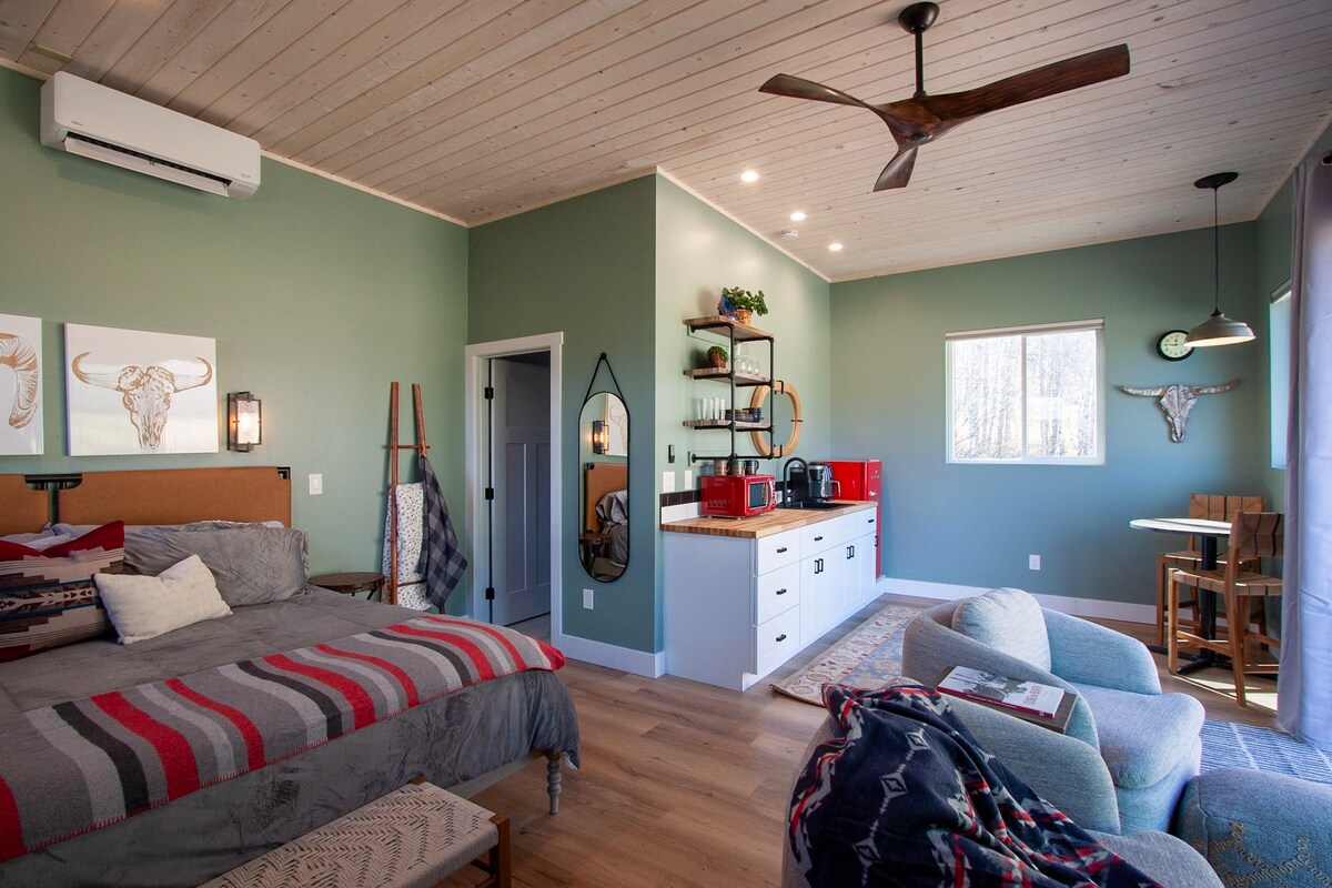 ¿Buscas el campamento base perfecto para tu escapada al suroeste de Colorado? Cómodamente ubicado en 3 acres en los pinos, pero a solo 10 minutos en coche del centro de la ciudad, nuestro estudio es la plataforma de aterrizaje ideal para lanzar tus aventuras, o un lugar para relajarte tranquilamente en una ubicación cómoda y conveniente. Con fácil acceso a más de 75 restaurantes, bares y tiendas, el histórico tren a Silverton o el acceso rápido al Parque Nacional Mesa Verde, ¡Durango Basecamp está perfectamente ubicado para toda la acción!