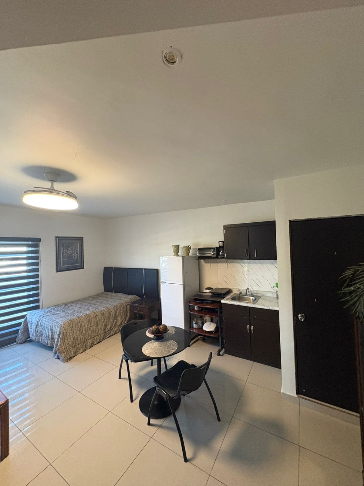 Excelente ubicación, departamento céntrico recién remodelado. Cuenta con cama matrimonial muy cómoda, cocina, internet de 200 megas, smart tv, cocina equipada y baño completo. Ubicación inmejorable! A la esquina de la calle se encuentra un súper donde puede hacer su mandado, a una cuadra se encuentra un deportivo muy bonito para hacer ejercicio y correr, a cuadras de hospitales, farmacias, papelerias y de vías principales! SE FACTURA Déjame saber como te puedo ayudar, me encantará hospedarte.