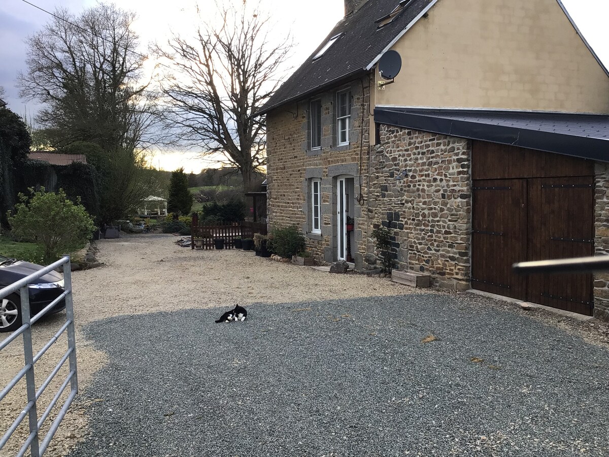 A 5 minutos del bosque, el lago y el río en Fosse Arthour, una casa de campo de 2 dormitorios para personas que aman la naturaleza y los animales en una granja de caballos en Normandía. Jardín abierto, patio y lugar de estacionamiento junto a la casa. La casa debe limpiarse antes de la salida (de lo contrario, cobraré una tarifa de limpieza de 50 €). Los 2 perros pueden venir contigo aquí, deben mencionarse al reservar y mantenerse con correa en la propiedad. 4 perros viven en la casa principal, 6 caballos, patos, Jerry, nuestro gato de granja. Starlink wifi, Netflix, Disney+, Prime Video