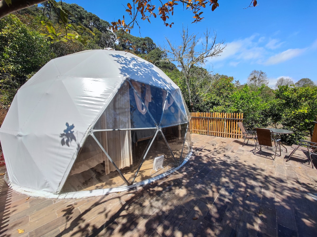 Vive una experiencia única alojándote en este lujoso y comodo domo geodésico, único en su tipo y en la region, y a tan solo 20 minutos de las majestuosas grutas de Tolantongo. Excelente ubicación privada y tranquila, cerca a restaurantes de barbacoa, fondas y tiendas, maravillosas vistas a las montañas, todas las comodidades de un hotel, pero en contacto con la naturaleza. *Aire Acondicionado *Smart tv *Cocineta equipada *Fogatero *Alexa *Sala exterior