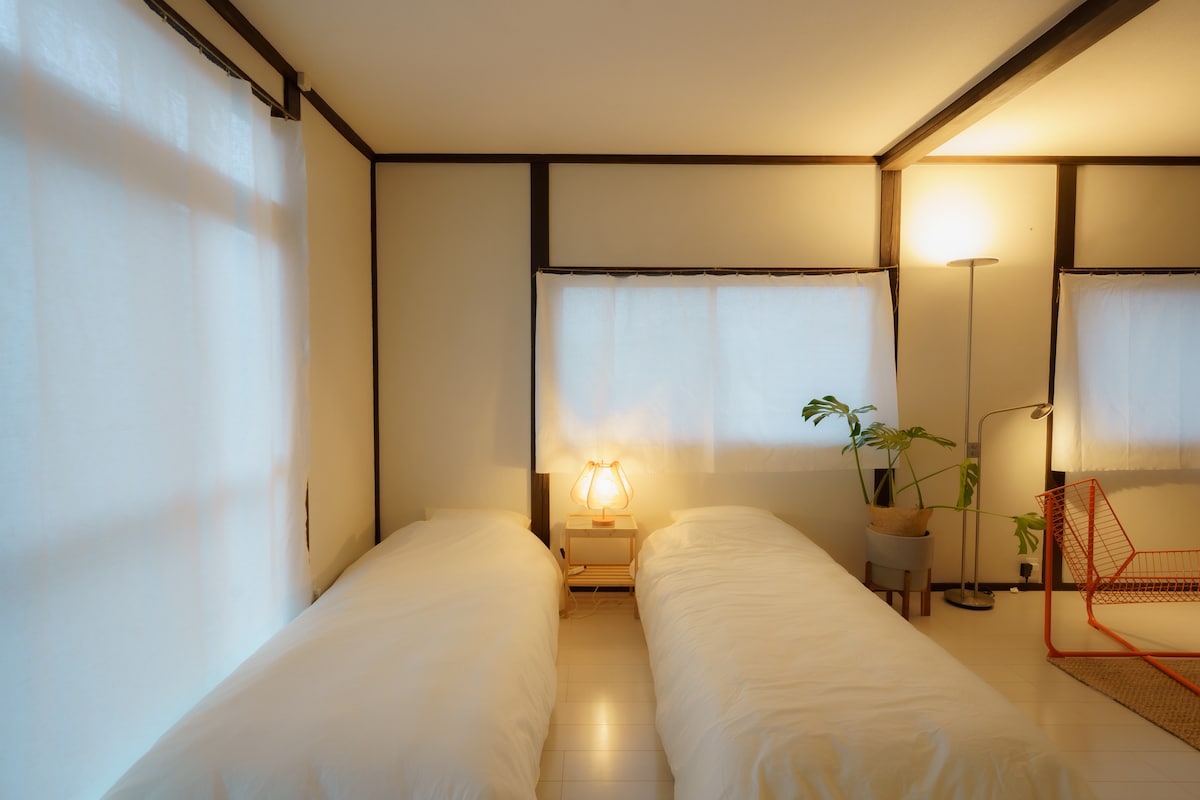 ▪️▪️12の宿の魅力▪️▪️ 1, 酒蔵の敷地内にある宿で、無料の試飲体験が楽しめる 2, 宿泊者限定!酒蔵ショップで使える10%OFFクーポンを進呈 3, スーパー・コンビニが徒歩10分圏内 4, 地元銘菓のプレゼントをご用意 5, 電動自転車の貸し出しあり 6, 寝心地にこだわった「西川ブランド」の布団とマットレスをご準備 7, ホットサンドメーカー完備 8, ベッドルームは襖で仕切って2部屋として利用可能 9, JR川尻駅から徒歩7分の好立地 10, ボードゲームやおもちゃを複数ご用意 11, コーヒー、紅茶のドリンクサービスご用意 12, 最大6名宿泊可能、1日1組限定の一棟貸し 江戸時代から川港として栄えた熊本・川尻の町にある、1日1組限定の一棟貸し宿「川尻 泊(かわしりとまり)」。まるで暮らすように、ゆったりとした滞在をお楽しみいただけます。 宿は老舗酒蔵の敷地内にあり、名酒「赤酒」などの無料試飲体験や併設ショップでのお買い物も楽しめます。客室は和室2部屋(8畳×2)と洋室(8畳)を備え、最大8名まで宿泊可能。家族旅行や友人との滞在、ワーケーションにもおすすめです。