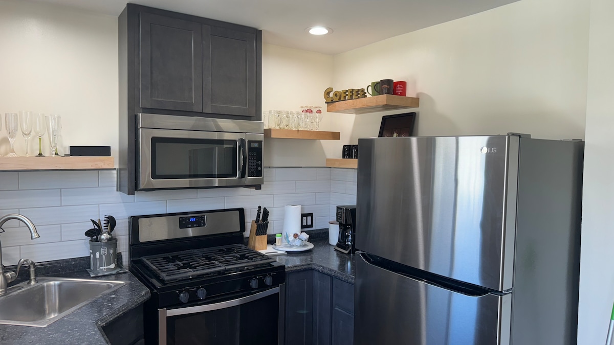 Esta casa de campo está diseñada para fortalecer y refrescar a las parejas que buscan una escapada de la vida ajetreada. Relájate en la cómoda sala de estar o prepara una comida en la cocina totalmente amueblada y recientemente renovada. Disfruta de tus noches en el espacioso dormitorio amueblado con una cama tamaño California King y TV en la habitación. Disfruta del jacuzzi privado a pocos pasos de la puerta o utiliza la barbacoa para preparar una comida y disfrutar juntos. ¡Los restaurantes, bodegas y campos de golf de la zona están a pocos minutos! ¡Seguro que lo disfrutarás!