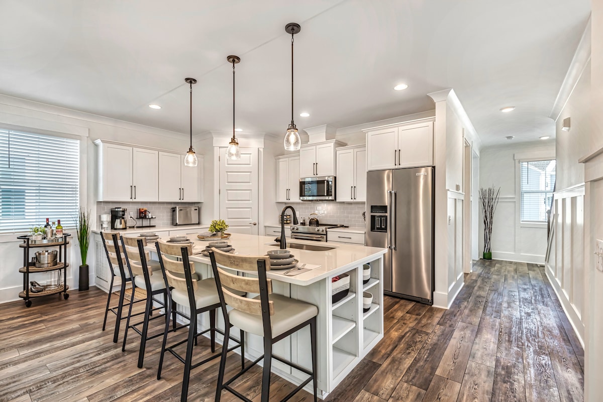 ✔A 500 yardas a pie de la playa, bicicleta, barco, tenis, golf✔, se✔ admiten mascotas,✔ 5 camas, cocina✔ gourmet☼, terraza, mesa de✔ ping pong y juegos, zona exterior con parrilla y mesa,✔ Spectrum y AppleTV,✔ Roku y✔ wifi, lavadora y secadora, listo para viajeros de negocios,✔ 2 garajes, patio✔ privado, cocina en el✔ primer piso, sala de estar con sofá de dos plazas y sofá✔ tamaño king, sala de✔ estar✔ semiabierta también como dormitorio con sofá tamaño king, armario pequeño adyacente, ♥♥tocador, porche para tomar el sol, 2 dormitorios en el✔ segundo piso con una cama queen en el dormitorio principal con cama king Tempur-Pedic, vestidor y baño con ducha, aire acondicionado de dos zonas.