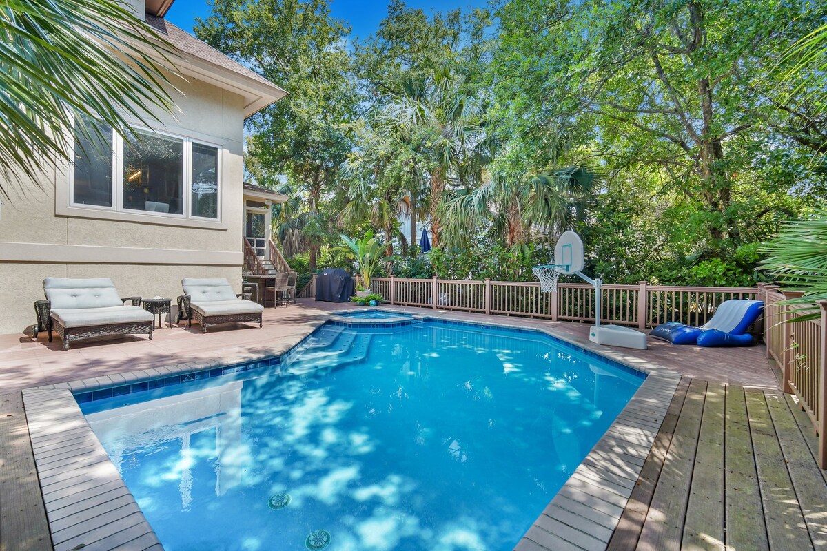 Discover your perfect Hilton Head getaway! This spacious 4BR/3BA, pet-friendly home sleeps 8 with a private heated saltwater pool, large sun decks + BBQ area, and a quick <5-min walk via exclusive path to beautiful Folly Field Beach. Enjoy 2 master suites (up/down) for privacy, 2 living areas + work nook ideal for families & remote work, full kitchen, fast Wi-Fi, and Smart TVs. Just 10-15 min to restaurants, shops & attractions. 75+ 5-star reviews for prime location & exceptional stays! 🏖️🌴