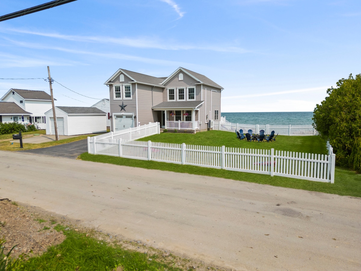 Relax with the whole family at this peaceful lakeside retreat. 🌊. This home sits between Lake Ontario & Cranberry, and is a short walk to a beautiful nearby sandy beach. 🏖️. Walk right down into the lake to enjoy the beauty and refreshing cool of the water. Inside, enjoy an open layout and stunning views of the lake 🌅 on both levels. Enjoy eating on the deck or in the fully stocked kitchen with coffee ☕️ and treats provided. Perfect for family fun, relaxation, and lakeside memories!