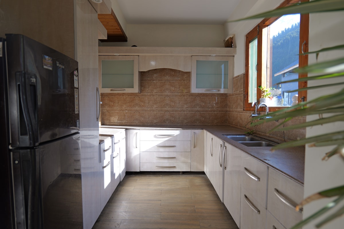 Warehouse Suites & Loft está en el pequeño pueblo de Shuru en Manali, con vistas a hermosos huertos de manzanas y exuberantes montañas verdes. Las habitaciones son elegantes, fuertes y respetuosas con el medio ambiente, diseñadas para mantener los caprichos del clima. Entra y serás testigo de una lujosa mezcla de piedra y madera. El loft tiene capacidad para 6-8 Pax (máx.). Tenemos 3 dormitorios con baños en suite y un espacio de descanso y comedor bien repartidos con vistas impresionantes a través de las ventanas del piso al techo.