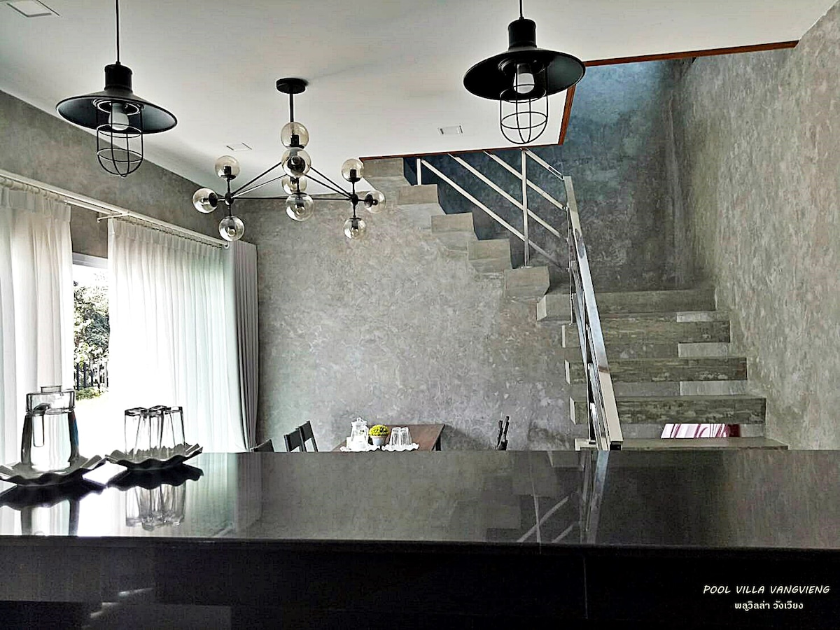 Villa privada con piscina estilo y villa privada Ubicación: a menos de 1 kilómetro del centro de la ciudad Nuestro alojamiento se encuentra en Vangvieng. Ofrece habitación con aire acondicionado con WIFI gratuito. A 6 km de la cascada Blue Lagoon, a 3 km del mercado nocturno de Vangvieng, a 2 km del río Nam Song y del parque Dinosor, a 6 km de la cascada Blue Lagoon, a 3 km del mercado nocturno de Vangvieng, a 2 km del río Nam