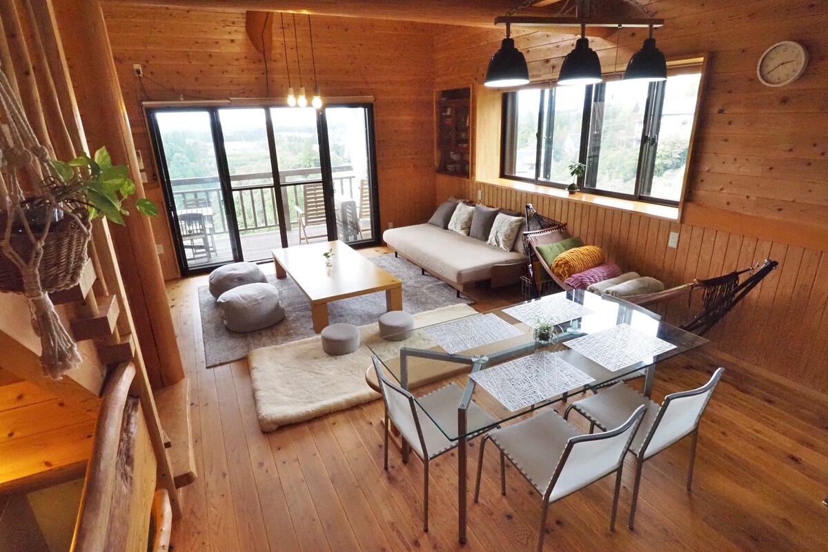 Alquiler de cabaña con estufa de leña en el bosque de Aso (para hasta 9 personas) / Dentro del área de Otohime Onsen y Kosugiri Resort