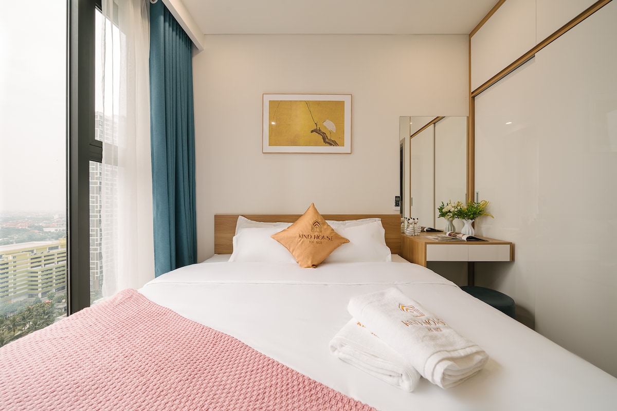 Kind House – Lujo minimalista 2 dormitorios en Masteri West Heights El apartamento de 2 dormitorios está diseñado para ser minimalista pero totalmente amueblado, impecablemente limpio y sofisticado en cada detalle. El salón es luminoso, la cocina está llena de utensilios, el dormitorio blanco huele fresco al sol, el balcón está abierto. Ubicado en el moderno Masteri West Heights con piscina, gimnasio, parque verde, centro comercial. El anfitrión es atento, ofrece asistencia rápida y proporciona una experiencia hogareña y cálida.