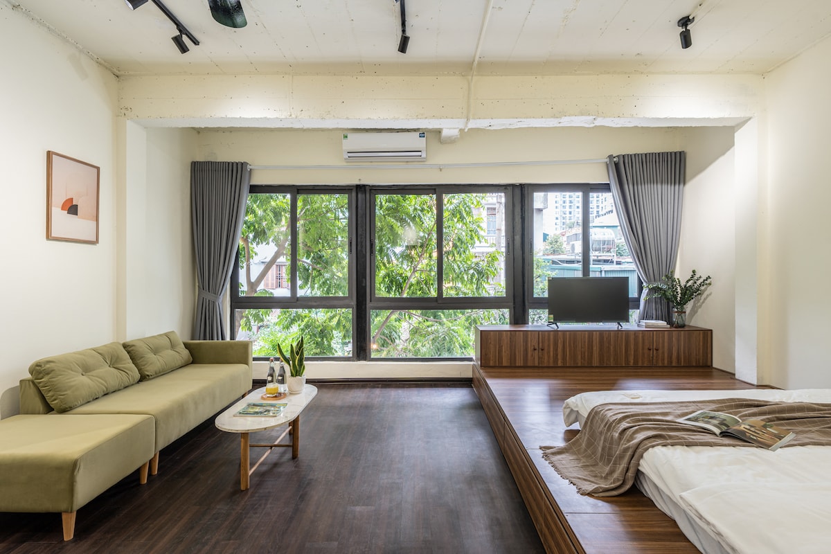 Welcome to your urban sanctuary in the heart of the city! This bright, modern apartment offers everything you need for a comfortable stay—fast Wi-Fi, a fully equipped kitchen, and a cozy living area. This is a place for you to charge and unwind. With an open-concept space design that fills every corner of your stay with natural light. We want you to enjoy every part of your stay; drink local coffee, lie on the sofa in the room, watch the trees and flowers.