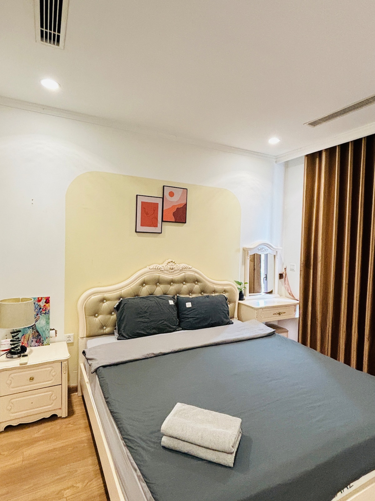 Nuestro apartamento se encuentra en una zona horaria de planta alta con bonitas vistas y vistas al centro de música acuática. El apartamento de esquina tiene 2 balcones , 3 dormitorios, todos con puertas de vidrio, 2 baños grandes, 1 espaciosa sala de estar y 1 cocina separada. Apartamento con seguridad 24/7 Times City incluye un gran centro comercial, cine , hospital Vinmec de 5 estrellas, restaurantes de comida rápida, parque infantil, piscina … El transporte es muy conveniente.