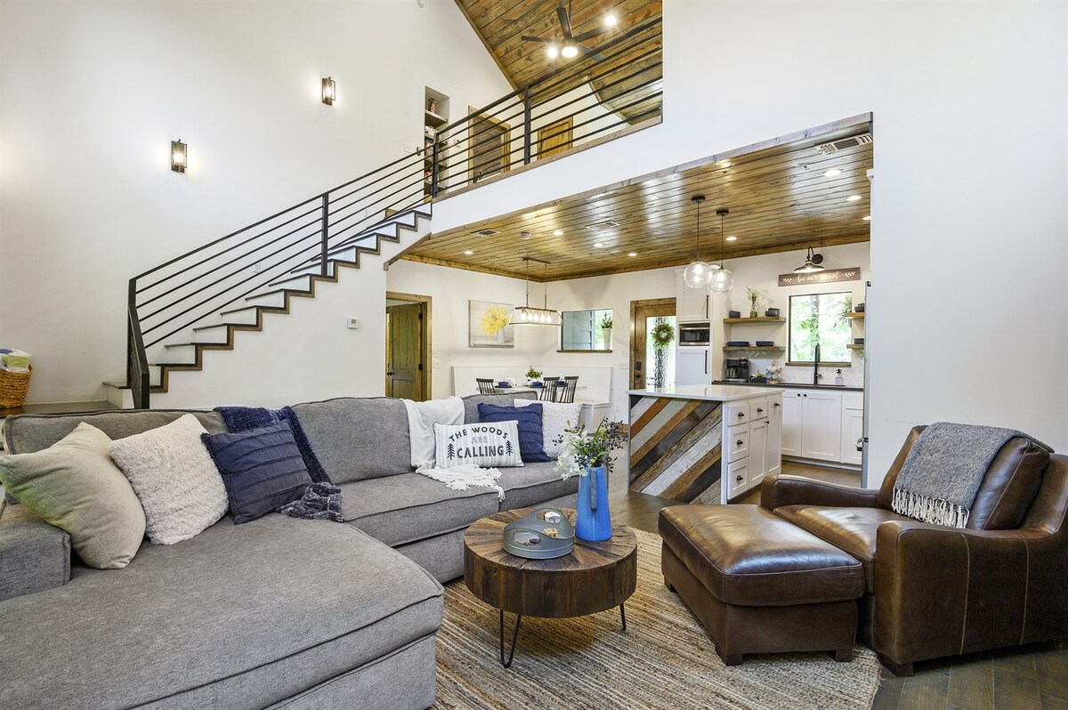Champagne Nights was crafted with a level of craftsmanship unmatched by others. From its high-end finishes throughout to the state-of-the-art kitchen, the attention to detail and interior design has been curated to deliver the highest level of luxury. The outdoor space offers a built-in gas grill, patio with SmartTV, Jacuzzi, and two fire pits. Enjoy a seasonal creek just steps away, offering sounds of peacefulness, all surrounded by towering pines. This property has a strict, no pet policy.