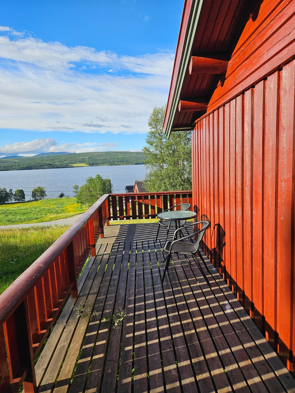 Moderna casa de campo de 189 m2 con una ubicación única sin vecinos, a 10 metros del lago Sølisjøen ("Sellisjøen") en Tydal. 1:45h de Trondheim. 5 dormitorios con 5 camas dobles y 2 camas individuales. Todos los servicios, 2 baños, lavandería, sala de estar loft, TV, TV, TV, wifi. Mesa larga con espacio para 12 personas, silla alta. Terraza de 60 m2, chimenea, parrilla de gas. Costa privada a 5 metros de las aguas de natación y pesca. A 3 millas de pistas de esquí arregladas a pocos 100 metros de la cabaña. Plaza de estacionamiento a poca distancia de la cabaña, 250 metros para caminar en verano, 700 metros en invierno.
