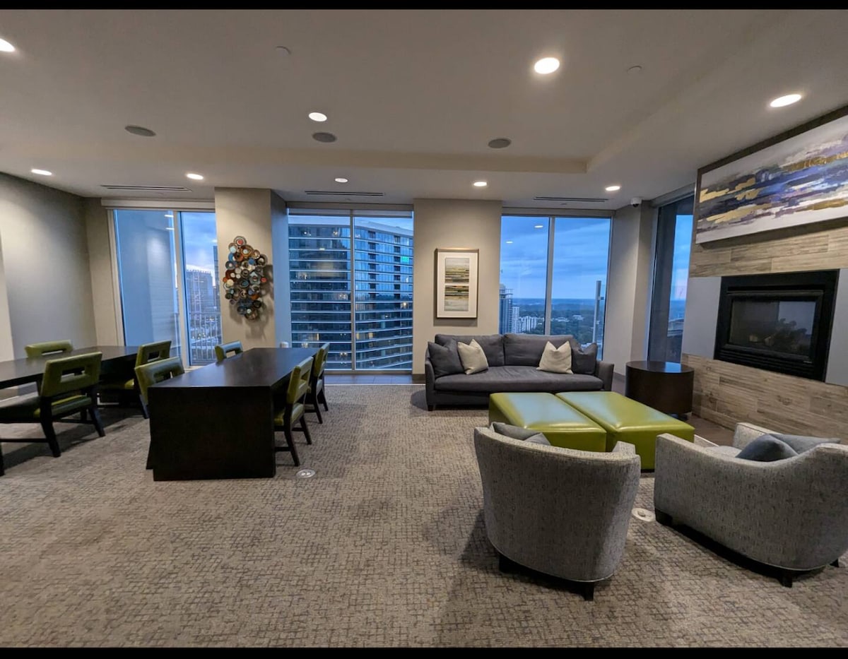 Eleva tu estancia en Atlanta en nuestro impresionante ático donde el diseño moderno se une al encanto de la ciudad. Sumérgete en las impresionantes vistas del horizonte desde las ventanas del suelo al techo y relájate en un espacio diseñado para el estilo, la comodidad y la relajación. Ideal para escapadas de fin de semana, estancias prolongadas o para celebrar los mejores momentos de la vida. Con los mejores restaurantes, vida nocturna y las principales atracciones a solo unos pasos, estarás en la posición perfecta para explorar lo mejor de la ciudad de una manera inolvidable.