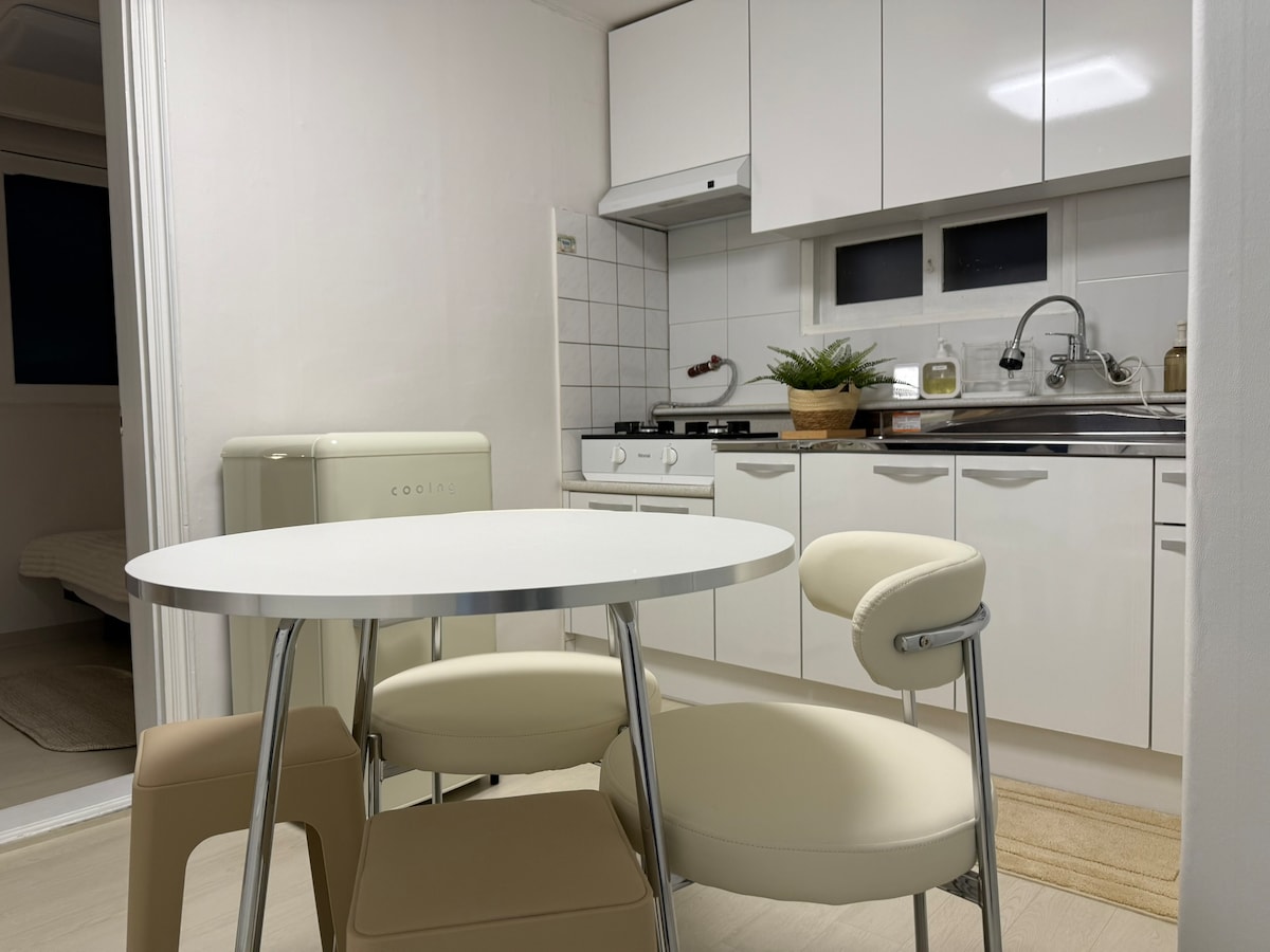 ¡Siente la comodidad en el centro de Hongdae! Como está situado en el centro de Hongdae, está cerca de cualquier lugar, por lo que es bueno para recorrer el barrio, ¡y es bueno para ver Netflix en un televisor de 55 pulgadas en una acogedora manta! Remodela el interior de la casa para sentir la comodidad de tu hogar en una bonita cocina y baño :) Aviso de llegada Llegada a las 17:00 Salida a las 14:00