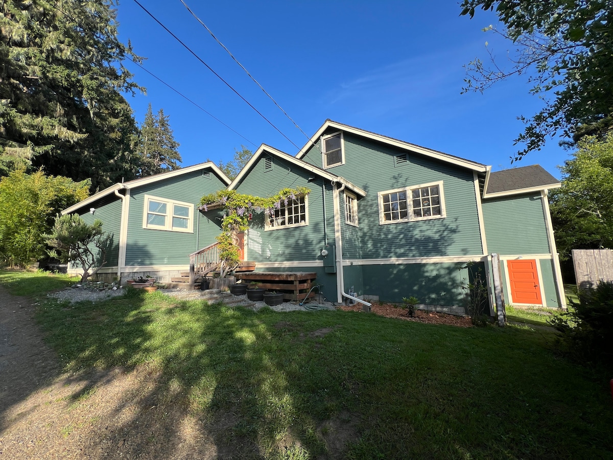 Espacio luminoso y alegre a dos manzanas de Cal Poly Humboldt y a poca distancia a pie de Arcata Plaza. ¡Recién remodelado! Tendrás lavandería privada, un patio vallado y una cocina totalmente equipada. Alfombras, toallas y sábanas suaves y acogedoras. Se proporciona café y té Keurig. ¡Se admiten mascotas! Entrada privada y aparcamiento seguro fuera de la vía pública. A una manzana de un hermoso parque con senderos, a minutos de las secuoyas y del mar. Esta unidad está unida a una casa principal, pero no se comparten zonas (excepto el estacionamiento). Propiedad LGBTQ+ 🌈💜