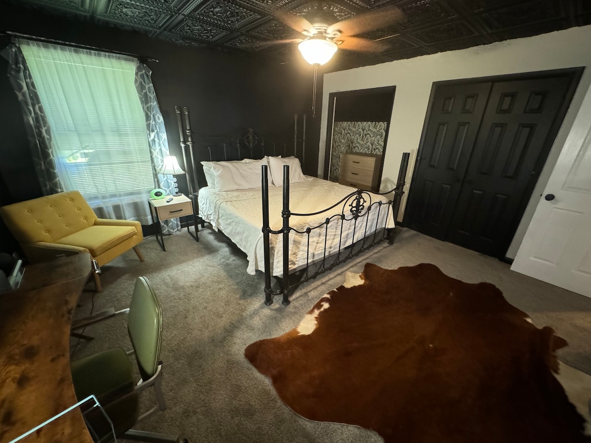 Bienvenido a nuestro estudio, un acogedor refugio cerca de lo mejor de Fayetteville. Ofrece entrada privada, patio y auto check-in. Estacionamiento seguro en la calle incluido. Disfruta de privacidad con un camino a tu puerta, aunque el estudio esté adosado a la casa principal. Dentro: baño completo, cama king y cocina pequeña con esenciales como microondas y cafetera. Ideal para enfermeros de viaje y contratistas en busca de comodidad y conveniencia.