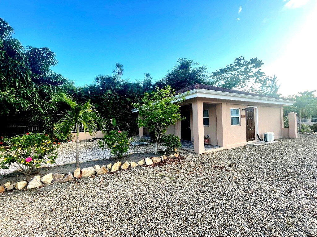 Este es nuestro apartamento estudio en la planta baja en Driftwood Gardens Guesthouse. Disfruta de un patio cubierto con hamaca, mesa de comedor y muebles de patio acolchados. En el interior hay una cama tamaño queen, una pequeña cocina y una ducha de azulejos. La piscina, la terraza y la zona de barbacoa están a solo unos pasos. Ubicación ideal: a 3 minutos a pie de la famosa acera y del mar. El operador turístico de servicio completo y el alquiler de carritos de golf están al lado. La cafetería y la tienda de comestibles están justo al otro lado de la calle. ¡Bicicletas gratuitas y sin servicio de Airbnb ni gastos de limpieza!