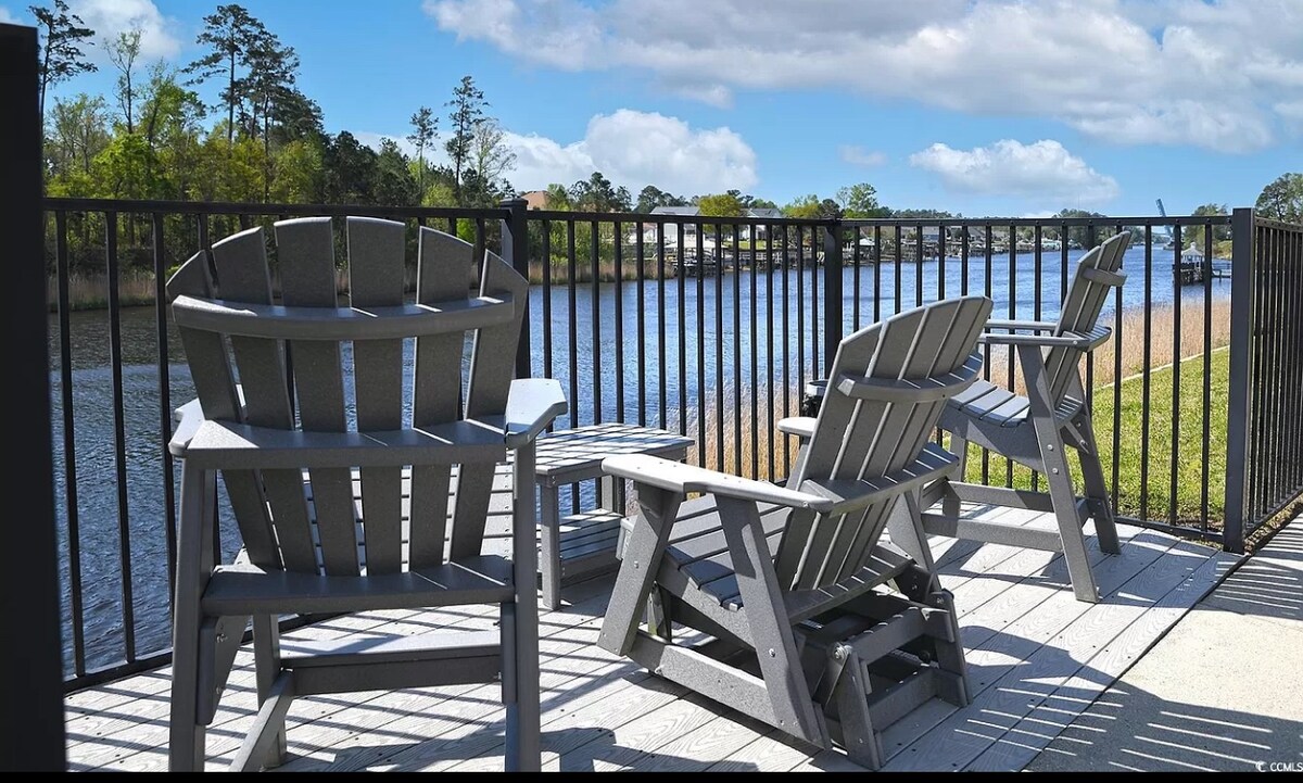Este gran apartamento frente al mar de dos dormitorios y dos baños se encuentra en la comunidad privada Captain's Harbour, a 6 minutos del aeropuerto de Myrtle Beach. Cuenta con un balcón con vistas a la vía fluvial intracostera del Atlántico, accesible desde cada habitación. Hermosa piscina frente al mar, muelle de día, ascensores y cancha de tenis/pickleball en el sitio. ¡Cerca de la Universidad de Carolina Costera, Market Common, Broadway at the Beach, Murrells Inlet Marshwalk, golf, tiendas, restaurantes, entretenimiento y playas!