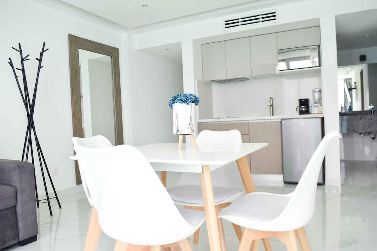 Nuevo y hermoso condominio con 2 dormitorios con TV, 2 baños, aire acondicionado, cocina totalmente equipada, piscina, WIFI, seguridad las 24 horas, los 7 días de la semana, estacionamiento privado para 2 autos. Excelente ubicación en un moderno vecindario de primer nivel, a 5 minutos de la zona hotelera. A poca distancia hay un centro comercial (Plaza las Américas), tiendas de groserías (Superama, 7Eleven), restaurantes, cafeterías y parada de autobús.