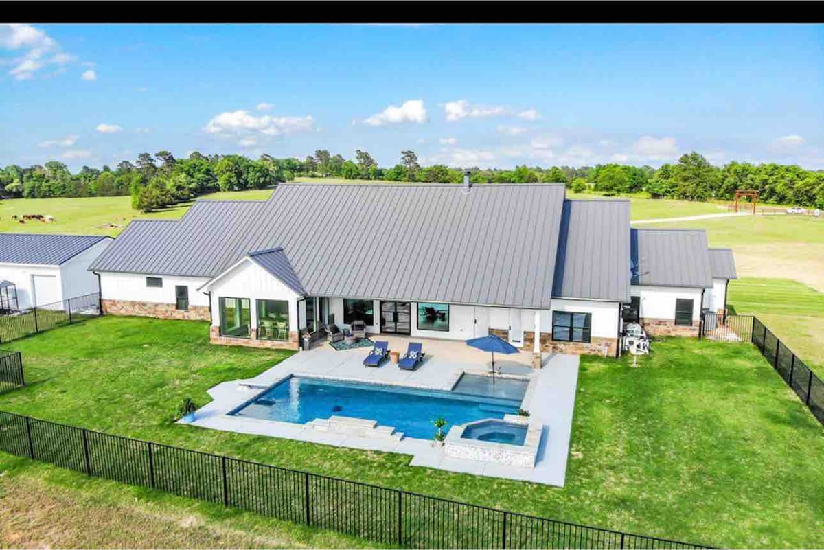 Bienvenido a mi encantadora y tranquila granja, ubicada en 11 acres privados en Crockett, Texas. Nuestra hermosa propiedad es perfecta para un retiro romántico, unas vacaciones familiares o una escapada con amigos. Cuenta con una hermosa cocina totalmente surtida, cómodos dormitorios y un porche envolvente para disfrutar de las espectaculares puestas de sol. Sumérgete en el sereno entorno rural mientras estás cerca de atracciones cercanas, como casas históricas, parques estatales y un safari en auto.