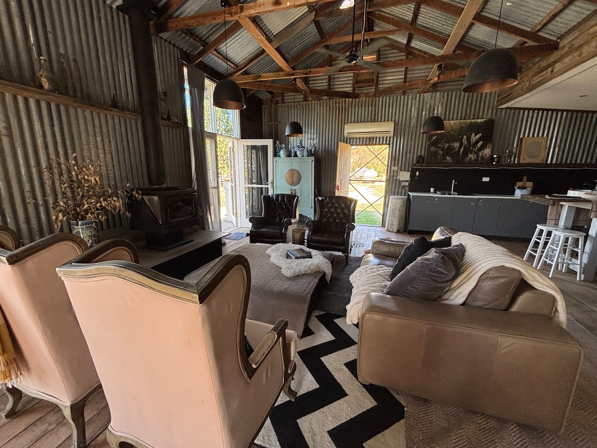 Cuando la gente busca una escapada rústica, a menudo se refieren a 5 estrellas envueltas en hierro corrugado. Esto no es así. Esto es realmente rústico: la madera vieja de los astilleros bordea la base de las paredes. El lavabo del baño es de la casa de 150 años de Nanna. El forro de hojalata es desde el techo de nuestro cobertizo de esquila, completo con auténticas marcas de óxido. No apto para niños pequeños debido a escaleras. Ven a experimentar nuestra "Shed House": una experiencia de alojamiento verdaderamente rústica en High Country.