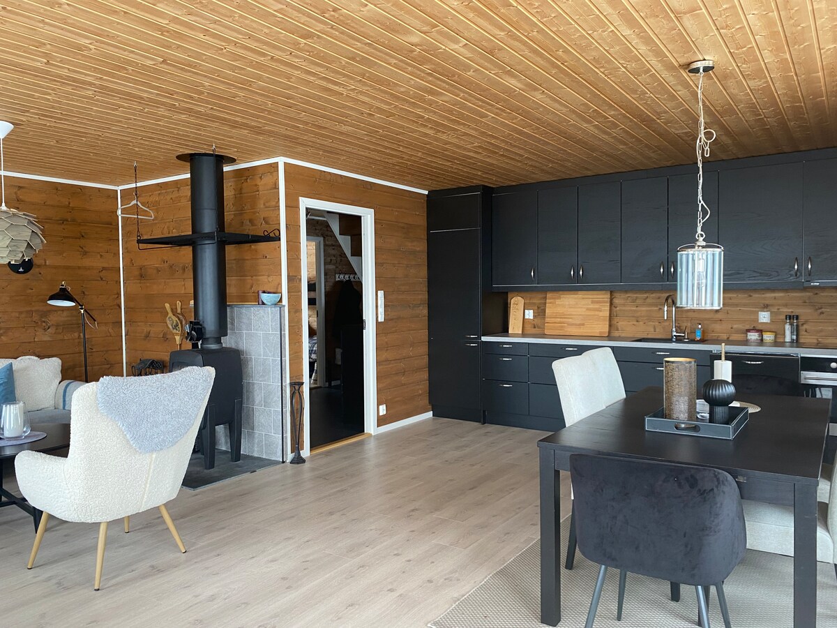 Bienvenido a disfrutar de la vista del hermoso Sognefjord desde nuestra clásica casa de estilo escandinavo con chimenea, terraza y costa propia. Bien con las oportunidades de pesca y senderismo, y no te sorprendas si recibes una visita de ciervos en el jardín. Cama de matrimonio en el dormitorio y 3 camas (120 cm) en un gran loft . Sala de estar con 6 metros de altura del techo y acogedor comedor. Se puede colocar la cama en la sala de estar. Gran y delicioso sofá de cuero de Bolia. Cocina moderna (nuevo 2021) y deliciosa chimenea que mantiene la casa caliente. Práctico baño con ducha e inodoro