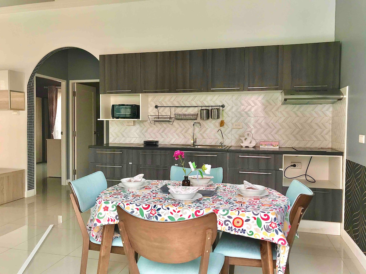 Siéntete como en tu casa con 3 dormitorios, 2 baños, una hermosa sala de estar y una cocina con utensilios de cocina completos. Ofrecemos wifi de alta velocidad gratuito, 4 plazas de aparcamiento privado, 4 aires acondicionados y TV de pantalla plana de 55 pulgadas. Adecuado para tu familia, amigos y mayores. Siéntete libre en una zona más amplia (interior y exterior). Puedes ir al aeropuerto de Huahin en 12 minutos (8 km), a la playa de Huahin (15 km), a la playa de Cha-am (19 km) y al hospital de Huahin (9,5 km).