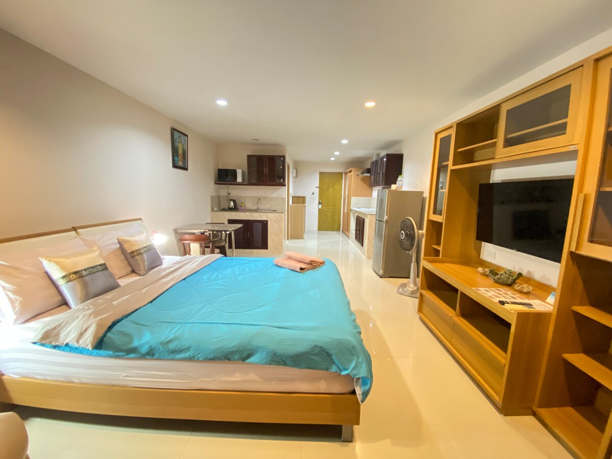 Un acogedor alojamiento boutique convenientemente situado justo al otro lado de la calle de los mercados de Cicada y Tamarind. La playa está a solo ocho minutos a pie (400 metros), rodeada de un vibrante barrio lleno de tiendas, centros de masajes y spa, animados bares y restaurantes. El centro de Hua Hin está a solo diez minutos en coche (5 km) de nuestra puerta. Esta unidad de estudio privada con baño privado, adecuada para 1-2 huéspedes, es el lugar perfecto para unas vacaciones románticas o una escapada de un amigo de fin de semana.