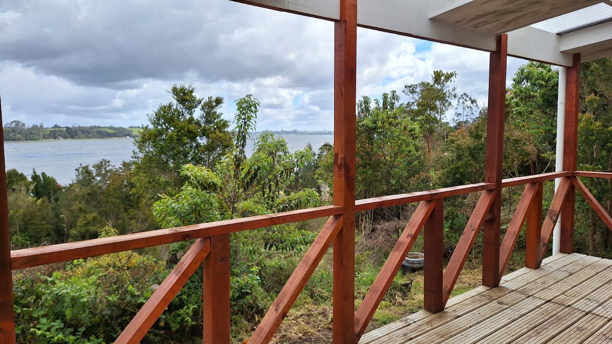 Disfruta de una inmejorable vista en este brazo de mar, relájate con los sonidos de la naturaleza cuando te quedes en este lugar único. Una pequeña, pero muy cómoda casita, con todo lo necesario para una estadía romántica o simplemente de desconexión. Nuestra bella Tiny House está llena de hermosos detalles para que te sientas acogido en la mitad del bosque. Si es tu dia de suerte vendrán Toninas ( delfines) a hacerte compañia.