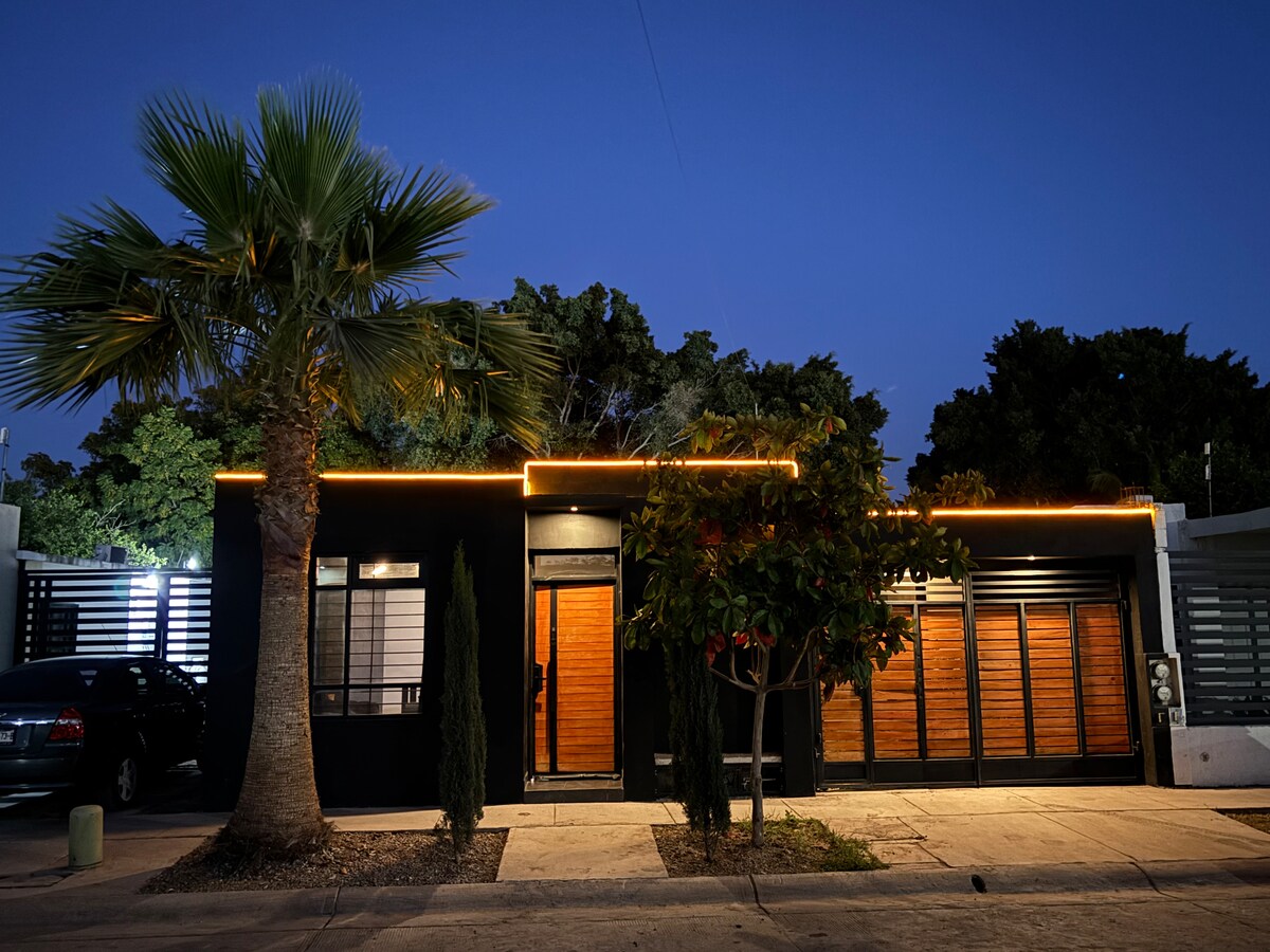 Relájate con toda la familia en este alojamiento donde la tranquilidad se respira. Somos pet friendly. amplio patio con asador y mesa de jardín. En uno de los sectores más seguros de Los Mochis, a sólo media cuadra de un parque recreativo, para que lleves a tus hijos o mascota a pasear, cochera para dos autos con portón eléctrico totalmente refrigerada, cerca de centros comerciales, tiendas de servicios y universidades.