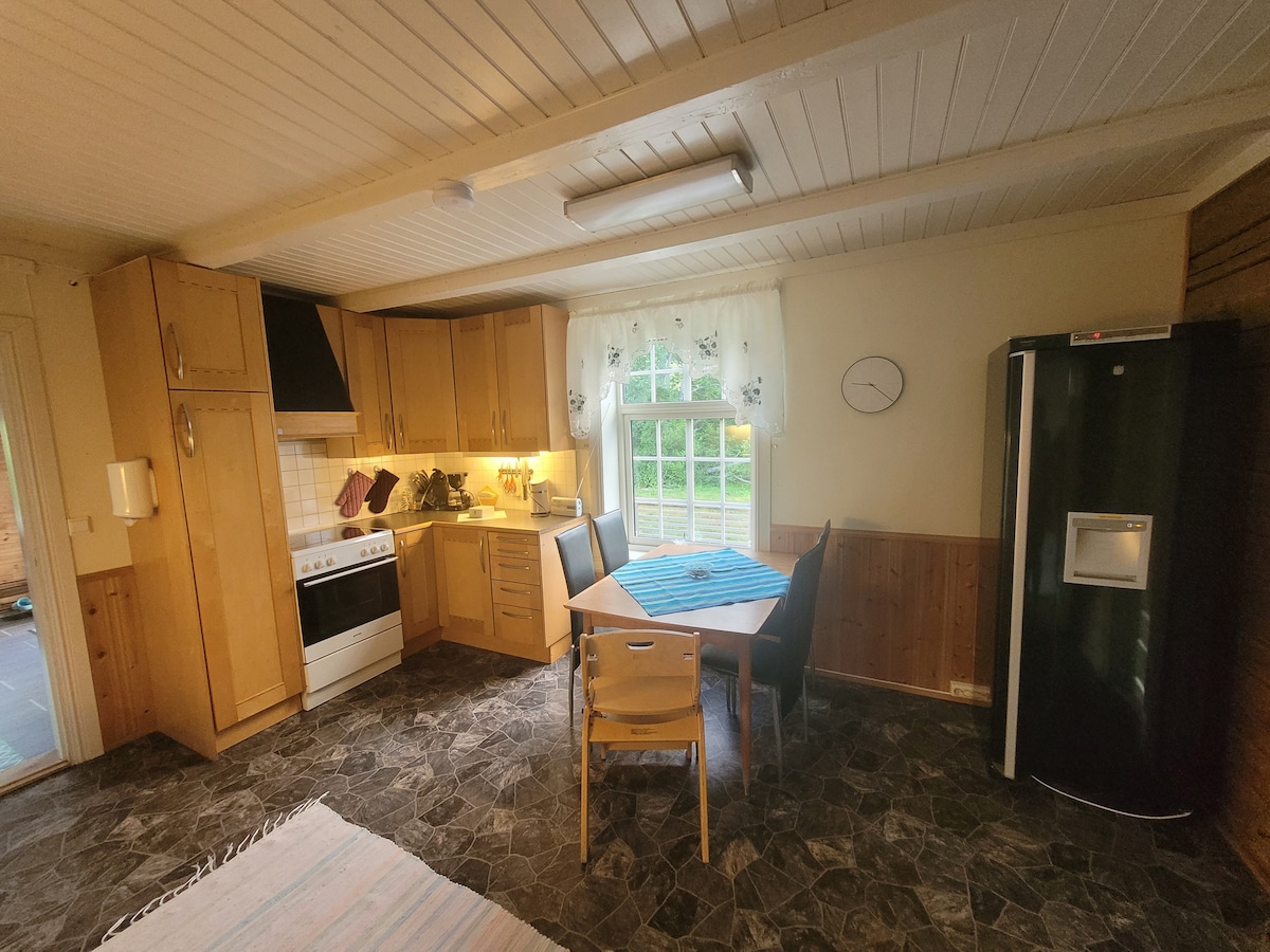 Acogedor departamento con espacio de estacionamiento propio, internet y entrada propia. Calefacción en todos los pisos. Sala de estar con chimenea y pantalla cromática. El dormitorio tiene mucho espacio, buenas instalaciones de almacenamiento y su propia área de oficina. 1 cama de 150 cm y 1 cama de 120 cm, así como una silla que se puede convertir en una cama de 80 cm. La cocina está bien equipada con nevera/congelador, estufa estudio, microondas y, por lo demás, todo lo necesario.
