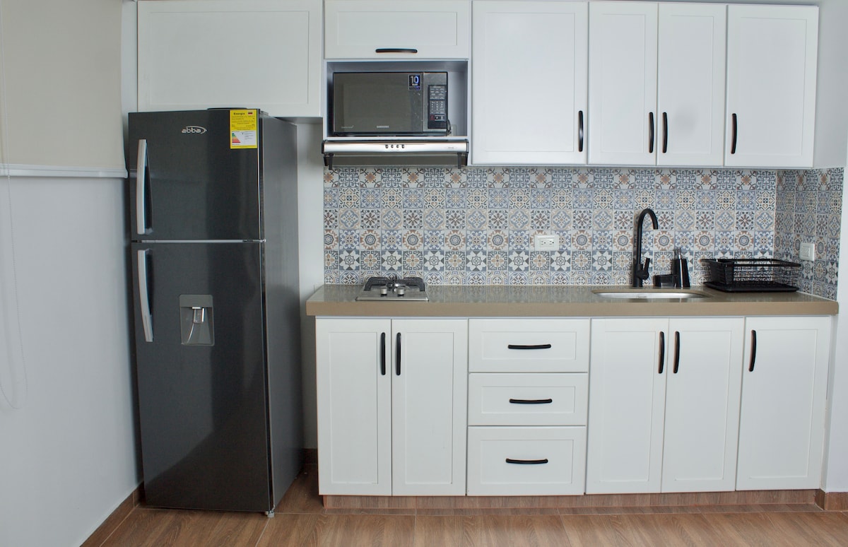 ¡Disfruta este moderno loft con todo lo que necesitas para una estadía perfecta!🌟 Vive la mejor experiencia de alojarte en un espacio cómodo y completamente dotado. ✅ Cocina equipada con horno, air fryer, licuadora, nevera y utensilios completos ✅ Baño moderno, lavadora, lavadero y tendedero ✅ Detalles de alta calidad: amplio armario y acabados premium. ✅ Una cama de 1,40 mts (ideal hasta para 2 personas) ✅ Un Sofa cama (ideal para 1 persona) ✅ WiFi y TV Smart de última generación