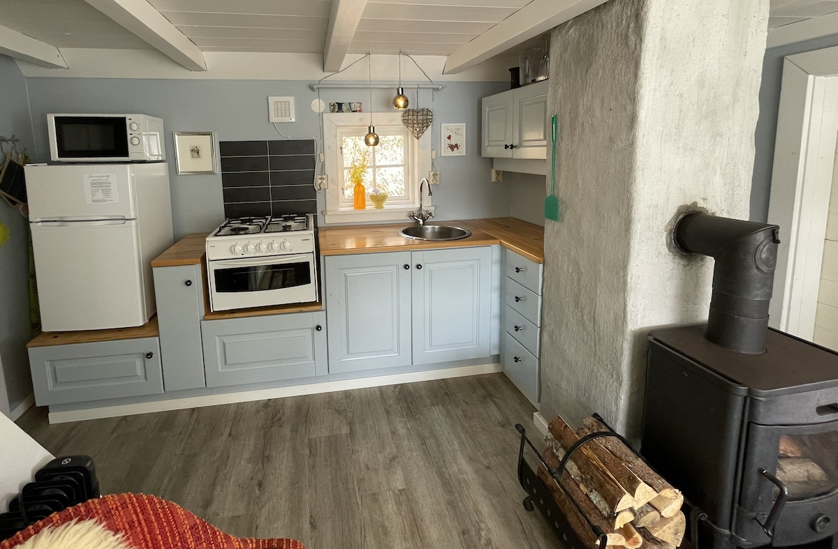 Lite Studio på 14m2 med alt du trenger. Den er i nærheten av nydelige strender, familievennlige aktiviteter som bading, strandvolleyball, fiske og ikke minst fantastiske turmuligheter i mark og fjell direkte fra hytta. Vi har Standup paddleboards (SUP) som kan lånes gratis. Eget privat uteområde med spiseplass, grill, hengekøye og vedfyrt bålpanne. Hytta har utedusj, kjøkken, toalett og dobbeltseng. Det er i nærheten av offentlig transport og butikk