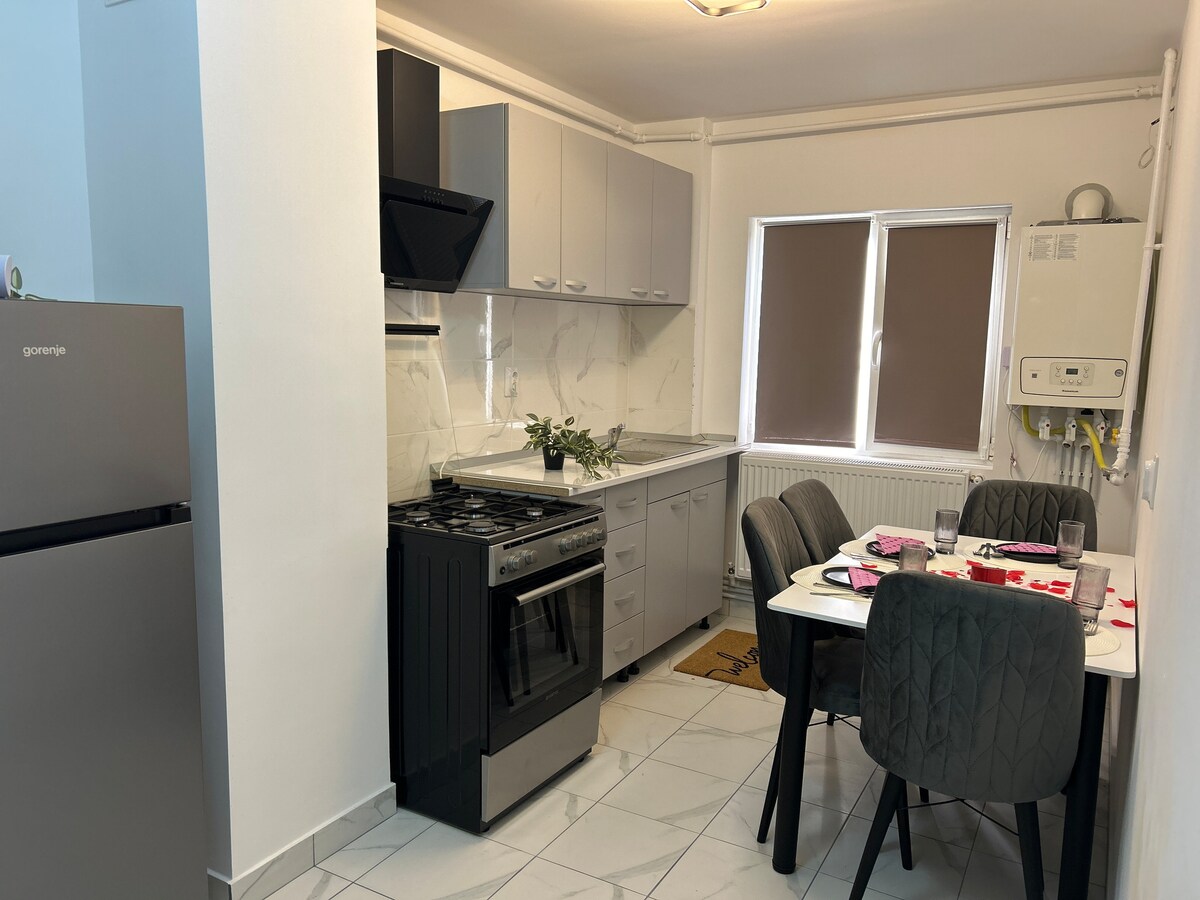 Apartamento moderno y acogedor, situado justo en el centro de Hunedoara, en una zona tranquila y segura. La ubicación es ideal tanto para turistas como para aquellos que viajan por trabajo. A solo unos minutos a pie se encuentra el castillo de Corvin, tiendas, restaurantes e incluso McDonald 's. El departamento está impecablemente limpio, cuidadosamente organizado para la comodidad de los huéspedes y ofrece un ambiente relajante después de un día explorando la ciudad. ¡De nada!