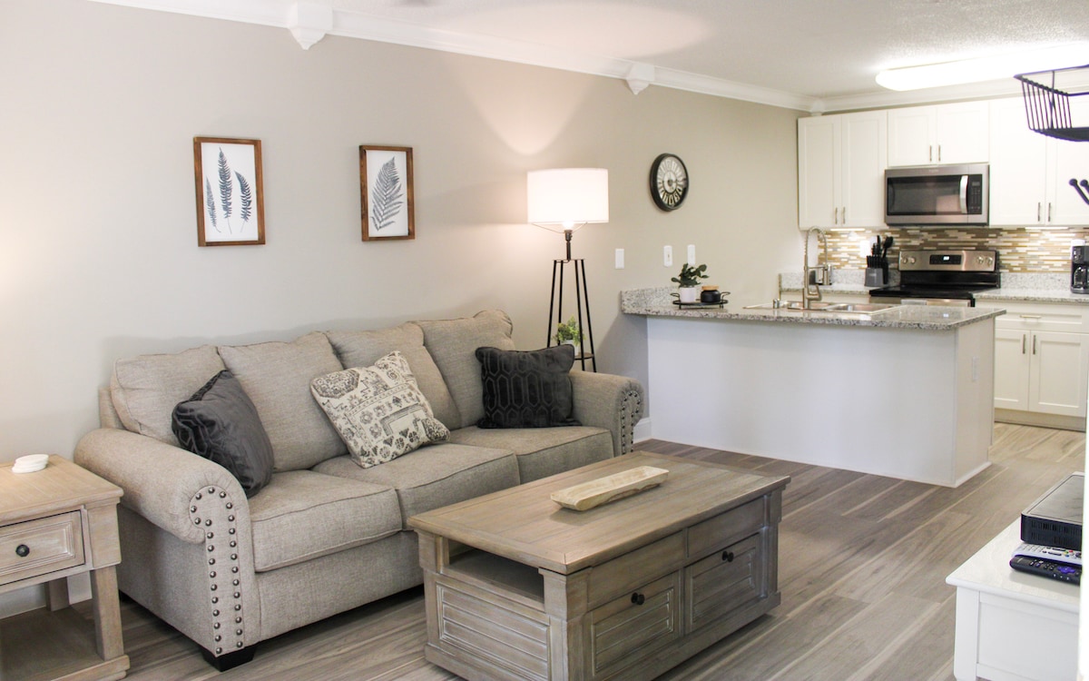 *Autoservicio, Smart Check-In * Estacionamiento GRATUITO en las instalaciones. - Piscina comunitaria *Ubicación céntrica * TV inteligente * Wi-Fi gratuito. * Cocina totalmente equipada con cafetera *Lavadora/Secadora en la unidad. *Limpieza profesional *4 minutos a la Universidad de Alabama (Huntsville) y al Centro Espacial y de Cohetes de los Estados Unidos *5 minutos a Bridge Street Town Centre *8 minutos al Centro Von Braun/Anfiteatro Orion * A 9 minutos del aeropuerto de Huntsville/Arsenal Redstone.