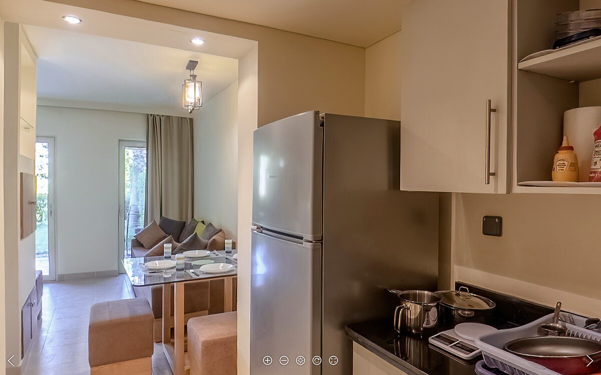 Enjoy a peaceful stay in this beautifully furnished studio located in the heart of Veranda, Sahl Hasheesh — one of the most elegant and well-maintained resorts in the area. The studio features an open terrace overlooking lush greenery and the swimming pool, perfect for morning coffee or a relaxing evening after the beach. Fully equipped and thoughtfully designed, the space is ideal for couples or solo travelers looking for comfort, privacy, and a resort-style atmosphere.