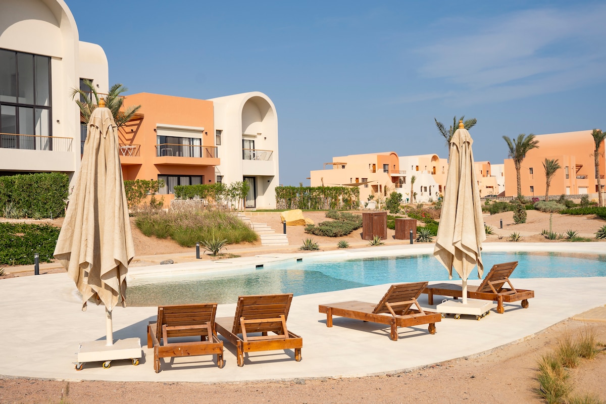 A calm, design-led apartment overlooking a lagoon-style pool, with clean lines, natural materials, and a light, uncluttered feel. Created for guests who value privacy, comfort, and a slower El Gouna rhythm. Thoughtfully styled interiors open directly onto the water, making mornings easy and evenings quiet. Ideal for couples or solo stays who want a peaceful base close to everything, without the noise. Best suited for relaxed stays, remote work, or longer escapes rather than party weekends.
