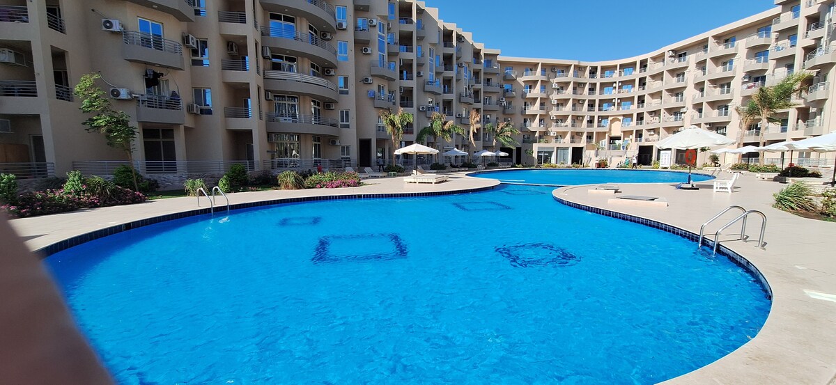 Ubicado justo en el bullicioso paseo marítimo de Hurghada, nuestro acogedor apartamento de 1 dormitorio ofrece comodidad y conveniencia. A solo 5 minutos en auto del aeropuerto, el apartamento está perfectamente situado a pocos pasos de supermercados, bares, cafeterías, tiendas y todo lo esencial que podrías necesitar. El complejo cuenta con tres grandes piscinas, incluidas opciones tanto para adultos como para niños, y proporciona acceso directo a una hermosa playa de arena ideal para un refrescante baño o un día de sol.