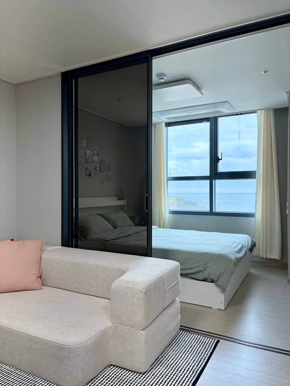 Hola ^^ Soy Tru Stay, que vive en el país y administra el alojamiento. Al entrar por la puerta, el mar hermoso te dará la bienvenida a través de la ventana de la sala de estar. Salida a las 12:00, disfrute de una relajada mañana Tipo de habitación - 1.5 habitaciones (dormitorio + sala de estar, cocina + baño) Puedes disfrutar de la mejor vista al mar desde el piso 10 de la vista al mar de gran altura En la sala de estar, puede disfrutar de vídeos OTT como Netflix y YouTube en la televisión. Llene el espacio a su gusto con un altavoz Bluetooth Está a 5 minutos en taxi de la estación de KTX Mukho/Donghae y la terminal de autobuses interurbanos. Hay una playa y un paseo marítimo a 3 minutos a pie del alojamiento. Restaurantes gourmet a 5 minutos a pie, tienda de conveniencia E-Mart 24 en el primer piso del edificio, E-Mart, tienda de comestibles, Daiso, Lotte Cinema, etc. Es fácil llegar al centro de la ciudad. Puede utilizar las instalaciones del edificio, como el mirador de la azotea, el gimnasio y la lavandería con monedas. (algunos pagos) - Otros - 1. Le enviaremos un mensaje informativo (contraseña de la cerradura digital de la puerta principal, número de habitación e instrucciones) el día de la llegada. 2. Dirección del alojamiento: 136-4, Hansum-ro, Donghae-si, Gangwon-do