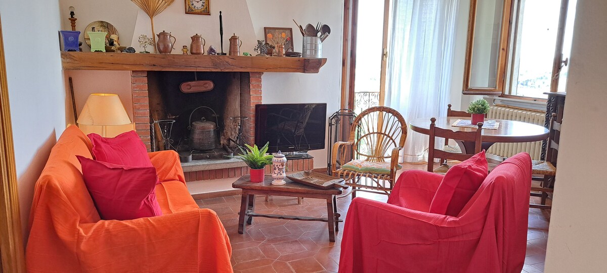 The independent, bright and welcoming apartment located on the ground floor of a renovated farmhouse from 1856, surrounded by green hills, consists of a large eat-in kitchen, a double bedroom with comfortable futon chair, independent bathroom. Triple exposure The apartment is equipped with: - centralized warming - fitted kitchen - bathroom with bathtub and shower - guest sheets and towels - stylish furnishings - veranda exclusive use with dining table overlooking the surrounding countryside.
