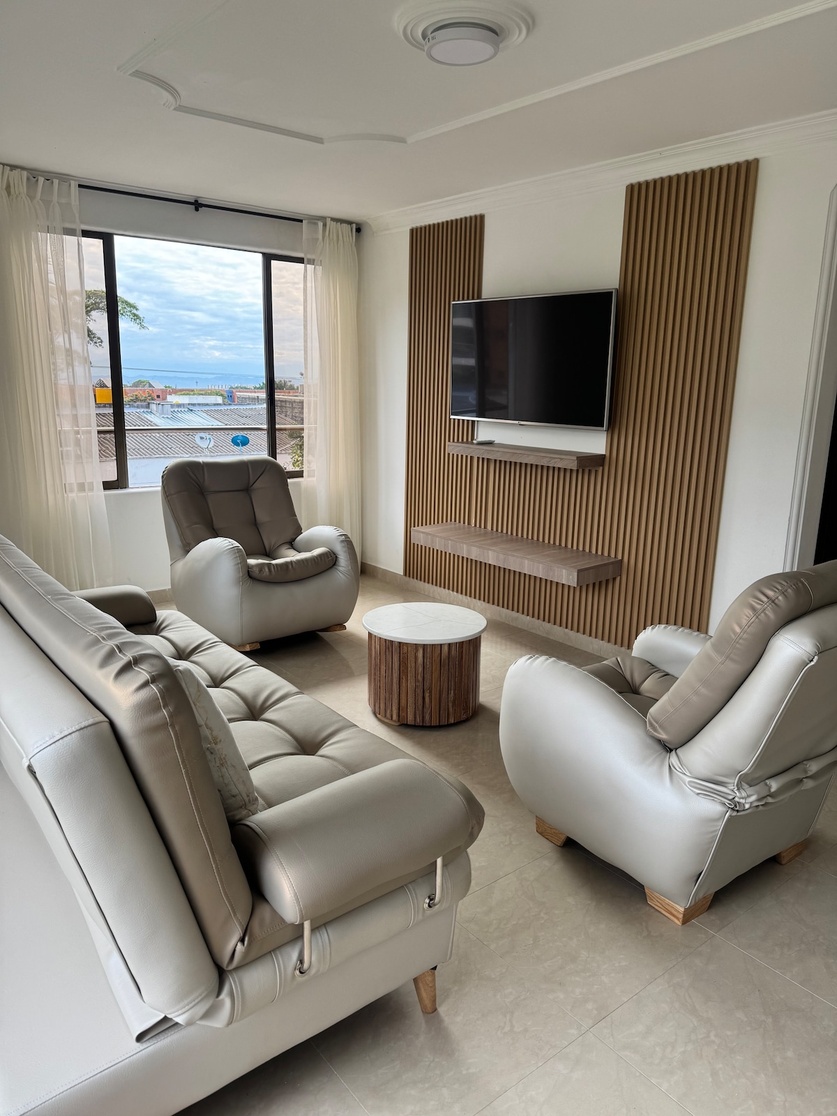 Apartamento moderno de 53 m² totalmente amoblado en zona exclusiva de Ibagué. Cuenta con 1 habitación con baño privado y cama matrimonial, 1 sofá cama amplio, estudio, cocina equipada, balcón con vista, baño social y zona de ropas. A solo 2 cuadras de Multicentro y 8 min de La Estación. Disfruta zonas comunes: piscinas, sauna, gimnasio, BBQ, teatro, juegos infantiles, parque para mascotas, billar y squash. ¡Confort total!