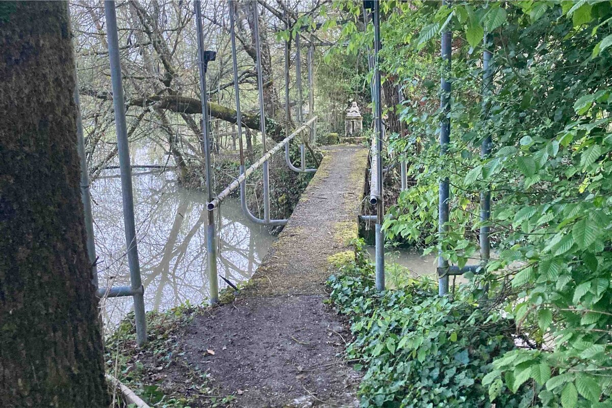 Cabane bâtie essentiellement avec des matériaux de récupération sur le petit îlot de notre étang. Aménagement confortable pour séjours courts ou longs. Lieu idéal pour se ressourcer, travailler sur un projet, jouer à des jeux de société, pêcher ou se balader dans la nature (parc, forêt, vignoble). Petit déjeuner et massages possibles. Accès privatisé à notre espace bien-être (piscine couverte + jacuzzi) en option de mai à octobre. Voir détails plus bas. 👇