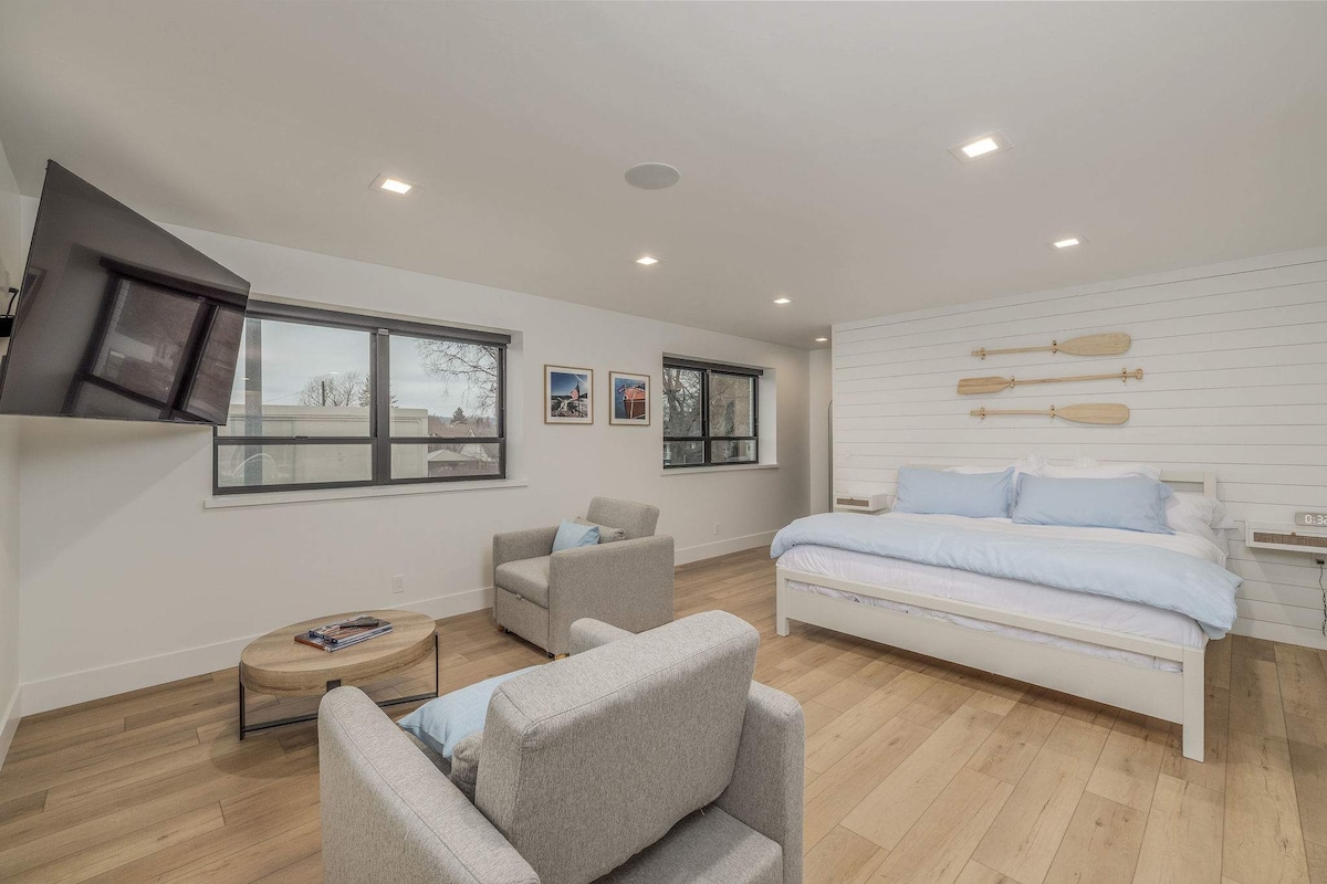 Alójate en el corazón de Coeur d'Alene, en la histórica Sherman Ave. Alójate por encima de la deliciosa Bier Haus y estarás a poca distancia a pie de todas las tiendas, restaurantes, el lago y el Coeur d'Alene Resort. Este es un estudio elegante y cómodo que nunca querrás dejar. Disfruta de tu patio con vistas al Bier Haus Beer Garden. Baja las escaleras para disfrutar de una deliciosa cena en cualquiera de los lugares. ¡Este es EL lugar para visitar Coeur d'Alene!