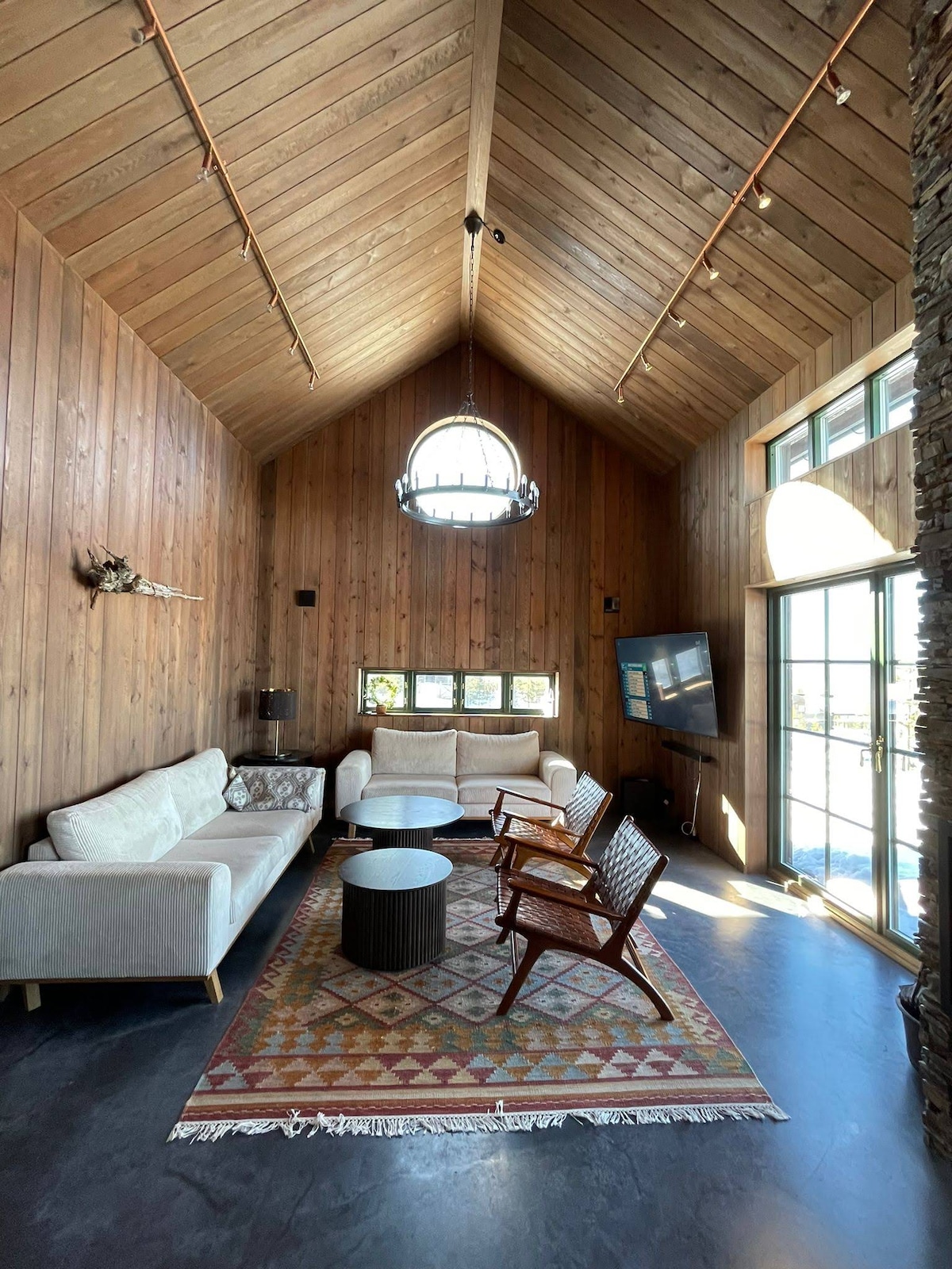 Los grandes ventanales dejan entrar la naturaleza y la luz. Una acogedora mezcla de madera clara, detalles vintage personalizados y toques orientales. Vives cerca de vastas zonas silvestres en Grövelsjön y Foskros, tres estaciones de esquí y pesca con mosca en Storån, así como el vecino Idre Golf. Tienes un bonito bosque detrás de la colina con arándanos y setas, un sendero peatonal arado de 3,5 km y un chapuzón frío en el río a diez minutos a pie. Además de carriles bici. Esperamos que te encante nuestra casa y la naturaleza que ofrecen Idre y los alrededores.