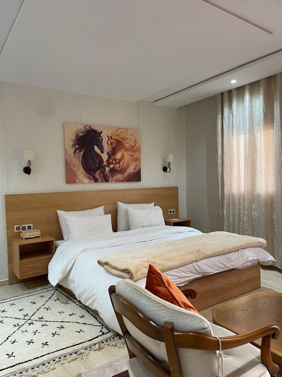 Amplio apartamento en el segundo piso, justo en el corazón del centro de Ifrane. Luminoso, cómodo y amueblado con buen gusto, ofrece dos encantadoras vistas de la ciudad. A solo unos pasos de tiendas, restaurantes, cafeterías y las principales atracciones. La cocina está totalmente equipada y la ropa de cama de alta calidad garantiza noches de descanso. Un lugar ideal para una estancia agradable, perfecto para parejas, familias o viajeros de negocios.