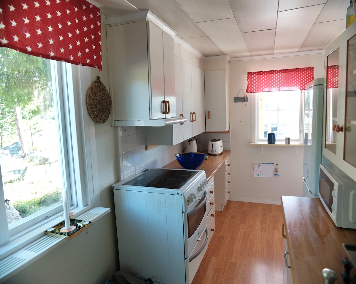 Mysig stuga med egen brygga vid havet