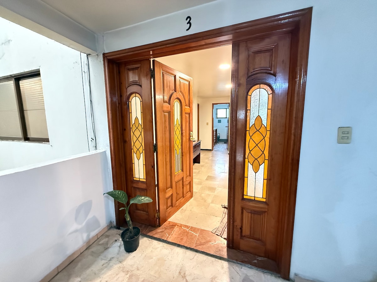 Cómodo y limpio apartamento, a 10 minutos del aeropuerto, cerca del centro de la Ciudad de México y sitios de interés. Incluye los servicios y amenidades que harán de su estancia en la Ciudad de México, una linda experiencia. Este espacio es privado para usted y su acompañante, ideal para estancias en espera de escalas, viajes de negocio o vacaciones familiares. Se cuenta con cámara de seguridad exterior para su seguridad.