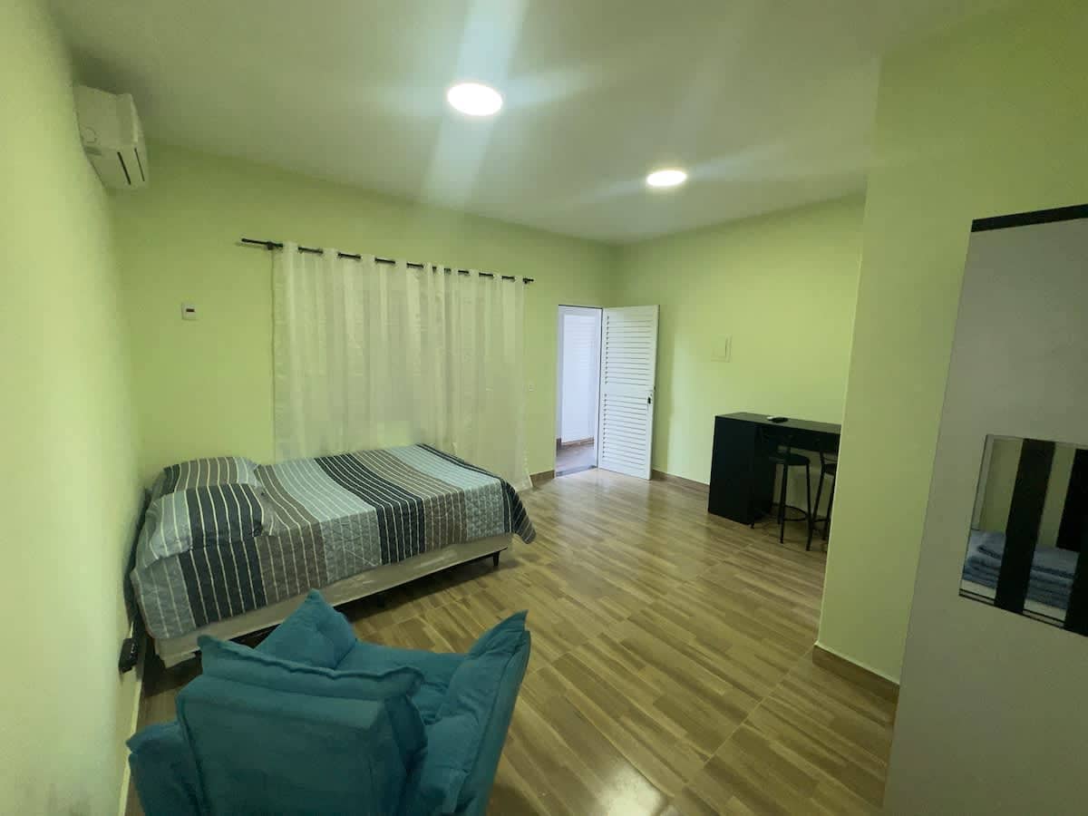 Lleva a toda la familia a este gran lugar con mucho espacio para tu momento de descanso y ocio. Ambiente con 4 suites y 1 baño externo, 4 suites con aire acondicionado, sala de estar, comedor, edificio con parrilla, fregadero, piscina, cocina completa con heladera, microondas, horno eléctrico, licuadora, sandwichera y utensilios necesarios. Garaje cubierto para 2 coches y espacio abierto para otros 3. NOTA: la piscina no tiene calentador