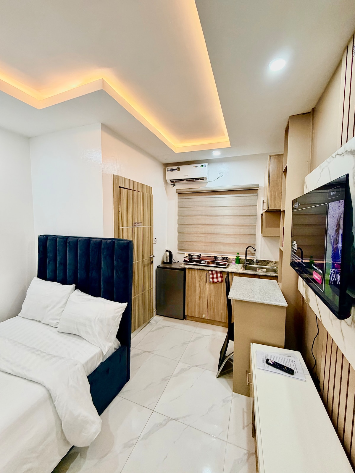Kick back & relax in this studio Apt located in LEKKI PH 1. It offers 24/7 Light & WiFi, NETFLIX (with your acc) DSTV & free cleaning every 3 days. It is very serene & secure & about 5mins walk to Imax cinema, Dowen college, Evercare hospital, Banks, Restaurants, Clubs. It is 4mins walk to the 24/7 Village Restaurant. Less than 5mins drive to the Lekki-Ikoyi link bridge & the Lekki Ph 1 gate. It is the smallest unit we have with a very small bathroom. Pls READ other info before booking.